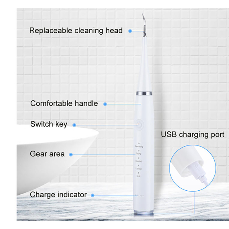 5-snelheid hoog-frequentie trillingen tandreinigingsscaler voor thuisgebruik, USB-elektrische tandenborstel voor het verwijderen van tandsteen