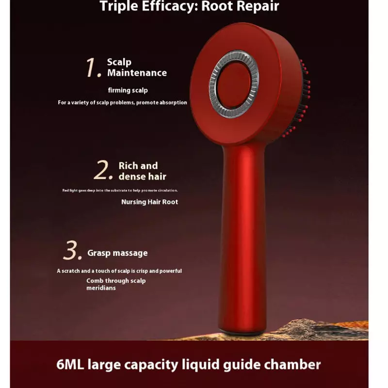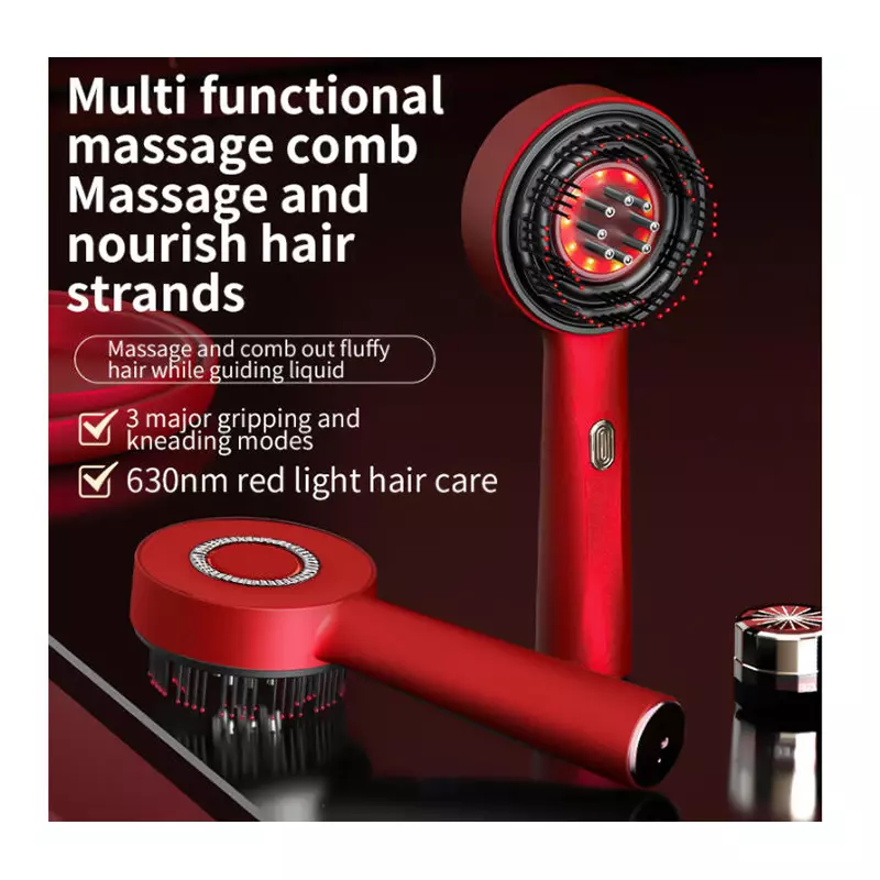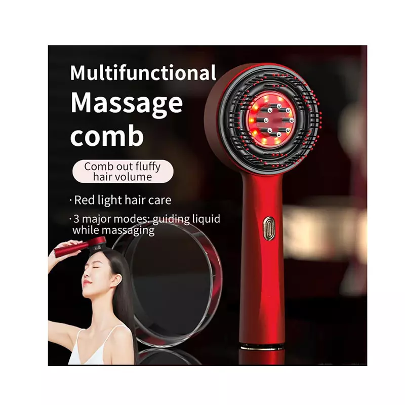 【3-mode red light guided liquid massage comb red】【Red light guided liquid massage comb】【Multi functional electric hair comb, guided fluid massage】