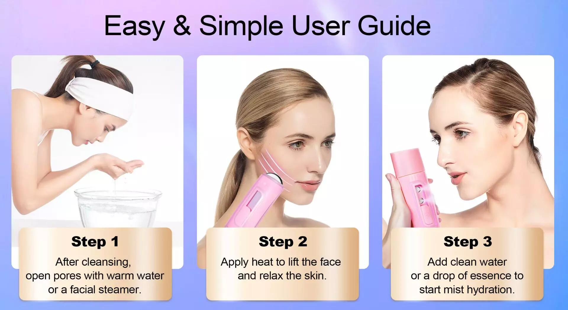 2: Hot compress function, deep cleaning, bid farewell to facial wrinkles, improve local blood circulation, enhance metabolism, and relieve skin fatigue