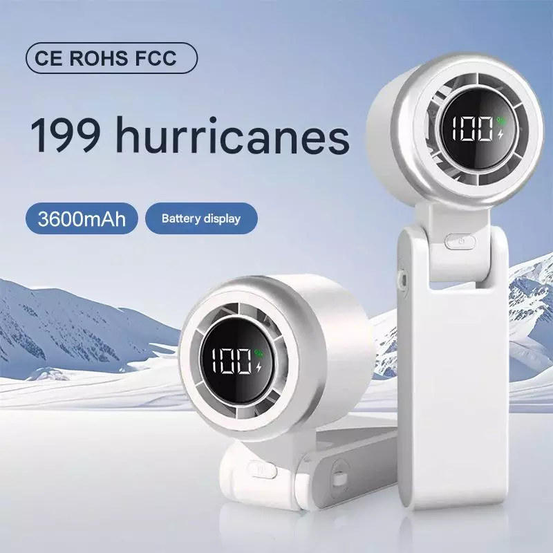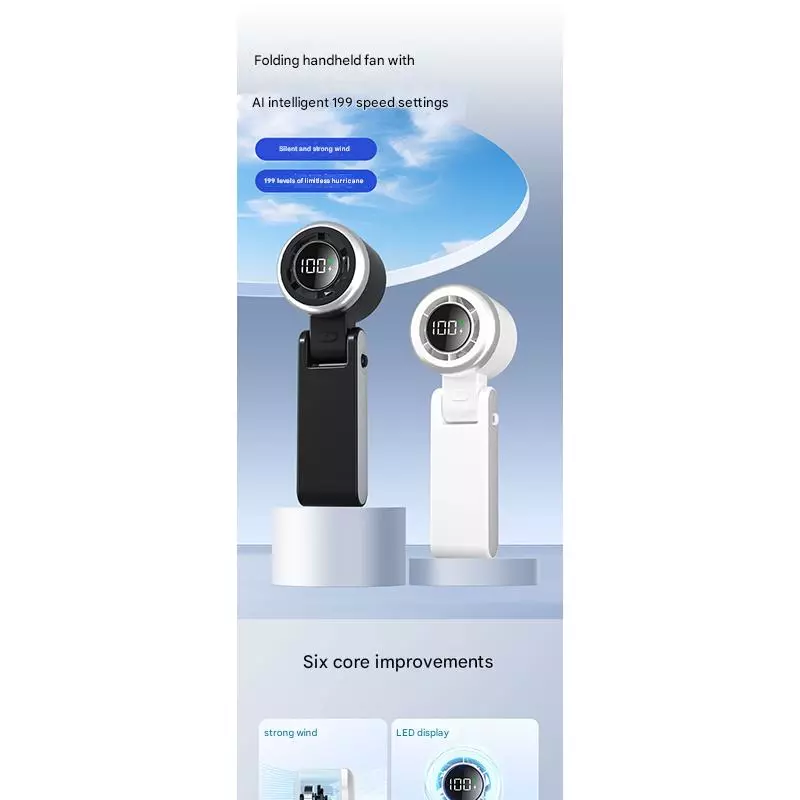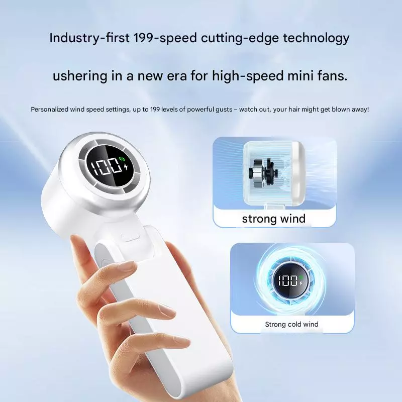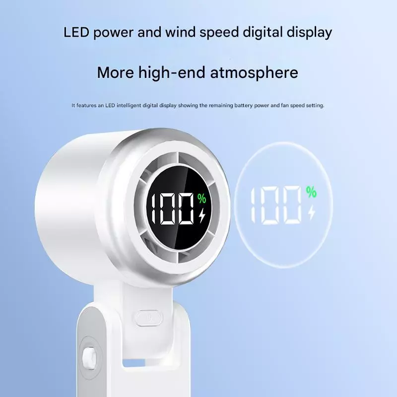 Handheld high-speed mini fan#Foldable neck hanging portable turbo handheld digital display USB violent fan#Charging Turbo Mini USB Fan